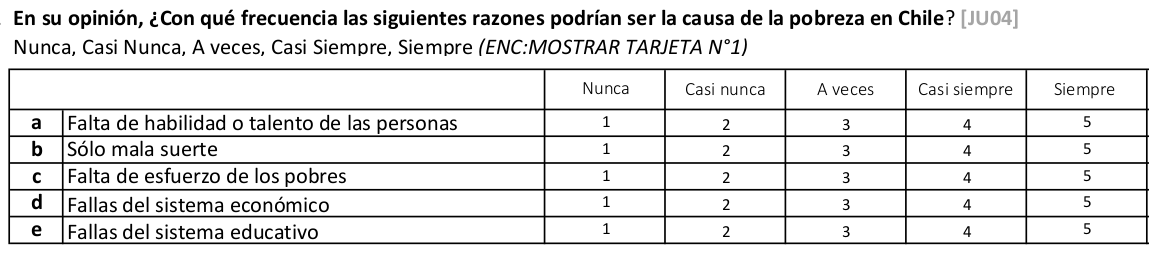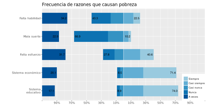 Razones pobreza falta de habilidad | Razones pobreza mala suerte | Razones pobreza falta de esfuerzo | Razones pobreza sistema económico | Razones pobreza sistema educativo | |