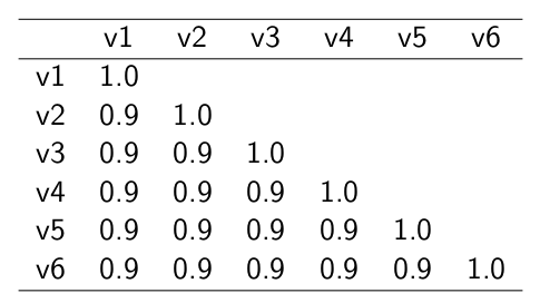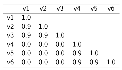 sjPlot::tab_corr(cor_mat, triangle = "lower", title = "Tabla de correlaciones del ejemplo" )